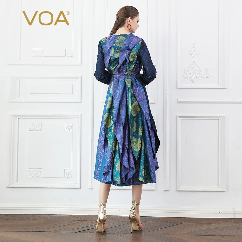 Well, before you decide to buy, it's good to look at the picture details about the product VOA Silk Jacquard Runway Dresses Art Design Petal Dress Bow Belt Ruffles Autumn Long Sleeve Print Vintage Elegant Ladies A10033. Next, you can directly visit the official store to find out the full description, prices and discounts offered.